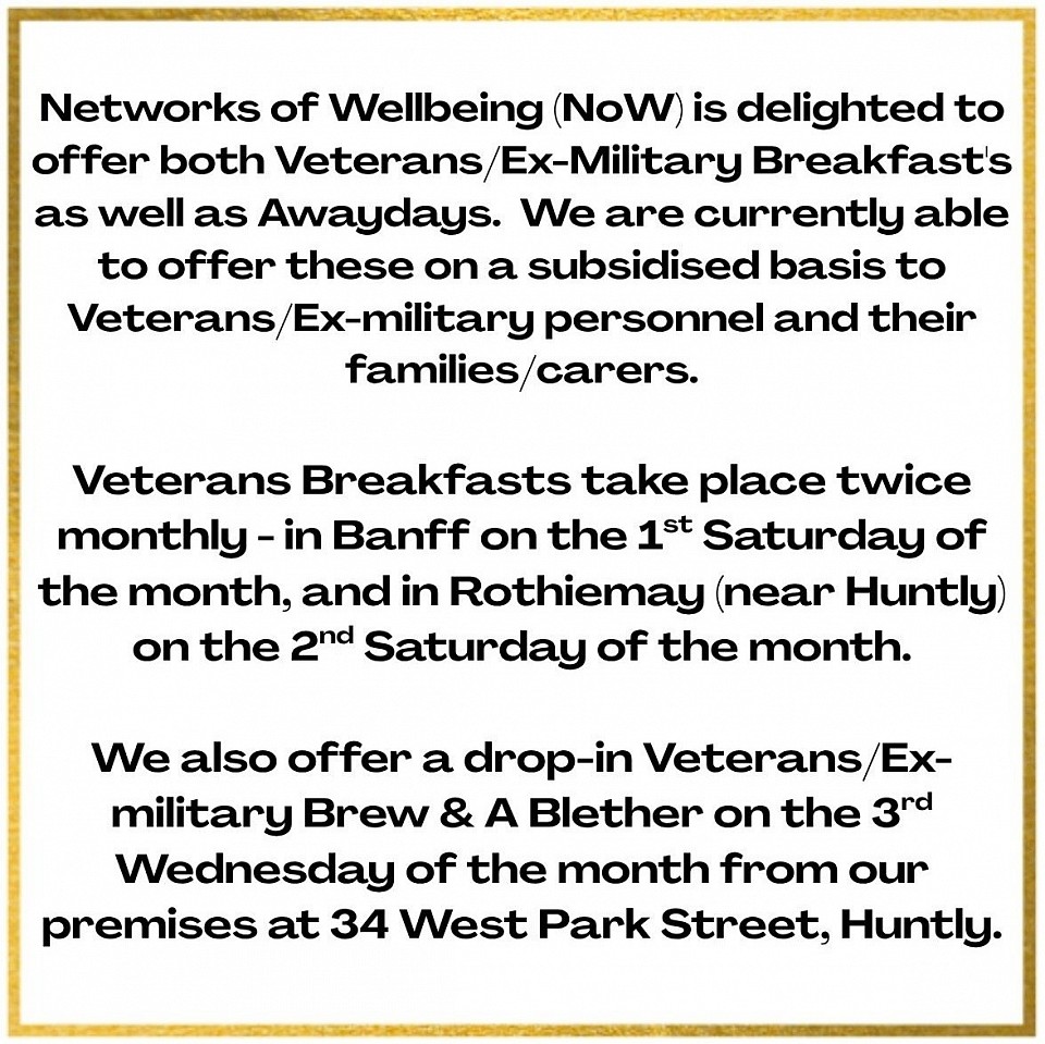 At NoW, our services are open to everyone - with a specific initiative liked to Veterans, their families or carers (see below). We do however recognise that there are times when a more specialist approach may be needed and, with that in mind, we have included this signposting page on our website, listing a range of organisations who can provide support and guidance to veterans and their families, and we hope that this information is of use to you.